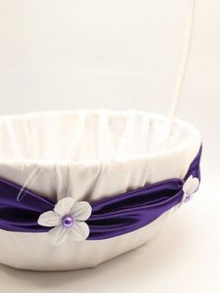 Корзинка для лепестков Gilliann Marissa BAS018 Корзинки - неотъемлемая часть ритуала, когда молодоженов обсыпают лепестками роз, желая им богатства, благополучия, семейного счастья. Они должны быть красочными, оформленными с выдумкой и фантазией. Корзинка Marissa сделана из атласа белого цвета. Полоса яркого фиолетового атласа обвивает корзину по внешней стороне, ниспадая складками. Маленькие нежные белые цветочки с жемчужиной в центре красиво выделяются светлыми пятнышками на фиолетовом фоне, одновременно служа креплением для ткани. Материал и декор: атлас, жемчуг, декоративные элементы. None