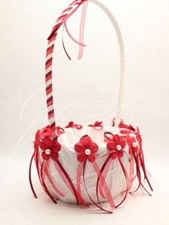 Корзинка для лепестков Gilliann Redrosso BAS016 Корзинка из коллекции Redrosso. Сделана из белого атласа, ручка до середины перетянута лентами красного и бордового цветов, что создает яркий контраст. По краям корзины - россыпь красных цветочков с жемчужинами в середке, украшенными бантами из лент. Длинные концы лент достают почти до дна, выделяются на белом фоне, создавая рисунок. С внешней стороны корзина обтянута прозрачным кружевом и закреплено жемчужинами. Красно-белое сочетание - популярное на свадьбе, красный цвет вносит эмоциональность, энергию, чувственность, это цвет любви и страсти. Корзинка идеально подойдет для белых или красных лепестков. Материал и декор: атлас, кружево, органза, атласные ленты, декоративные элементы. None
