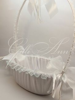 Корзинка для шампанского Gilliann White Rose BAS019 Корзинка для шампанского White Rose выполнена в белоснежных тонах, подчеркивает торжественность момента. Белый атлас по краям оторочен узким кружевом так, чтобы образовались оборки. Кружевная лента на ручке создает многослойность, ручка кажется пышной, объемной. В центре ручки и в местах крепления к корзине для шампанского - белые банты из органзы и узкой атласной ленты. Бутылки с шампанским (или вином) любого цвета будут смотреться в такой корзине красиво, выделяясь на белом фоне. Если свадьба проходит в зимнее время, корзинка для шампанского White Rose гармонично впишется в окружающее царство снега и льда. Материал и декор: атлас, атласные ленты, кружево, органза. None