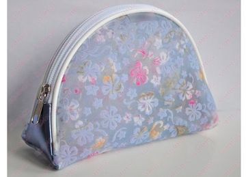 Косметичка из сетки сиреневого цвета в цветочки.