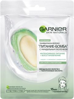 - Garnier Skin Naturals Питание Бомба Миндальное Молочко+Гиалуроновая Кислота 1 тканевая маска по выгодной цене 212 р. руб.;