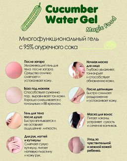 - Tony Moly Гель с экстрактом огурца Magic Food Cucumber Water Gel, Tony Moly по выгодной цене 550 р. руб.;