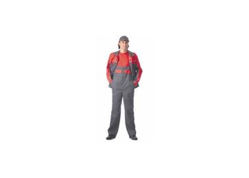 Ткань смесовая, ВО, 65% п/э, 35% х/б., пл. 240 г/кв.м. Куртка укороченная, с поясом, потайной застёжкой на "молнию", СО кантом. Полукомбинезон с застёжкой на "молнию". Цвета: васильковый с синим, темно-серый с красным, синий с васильковым, черный с зеленым. ГОСТ 27575-87. None