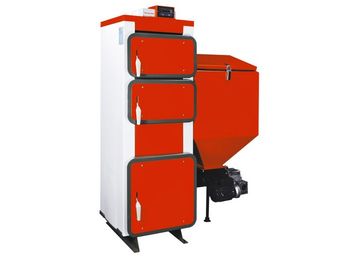 Модель твердотопливного котла с автоматической подачей топлива и воздуха. Горение угля происходит на ретортной горелке “Eko”. Модель полностью защищена от закипания теплоносителя. Помимо автоматической работы, этот котел имеет полноценную камеру для ручного сжигания топлива, которую можно использовать при отключении электропитания. Также водонаполненные колосники увеличивают площадь теплообмена и КПД котла. Благодаря микропроцессорному управлению, скорость горения угля регулируется путем изменения скорости подачи угля и силы наддува воздуха, обеспечивая автоматическую работу от 3 до 12 суток, а также экономию топлива до 40%. Обслуживание котла производится через удобные дверцы, расположенные с передней стороны. Отапливаемая площадь - до 750 м2.