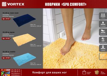 - Коврик для ванной Vortex Spa comfort 50х80 см голубой 24139 по выгодной цене 1 614 р. руб.;