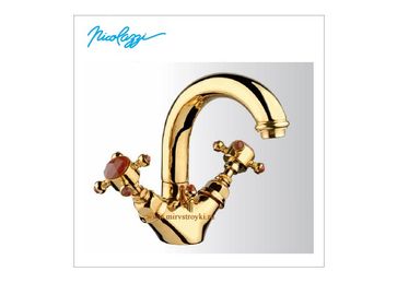 Смеситель Nicolazzi из серии Le Pietre арт. 2132 09. Для умывальника. Исполнение под золото. Двухвентильный. Страна Изготовитель Италия. None