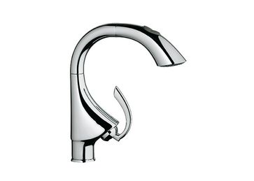 GROHE StarLight® хромированная поверхность монтаж на одно отверстиеGROHE SilkMove® керамический картридж 35 мм регулировка расхода воды поворотный трубкообразный излив встроенный выдвижной излив с возвратной пружиной встроенный обратный клапан автоматический переключатель аэратор/душевая струя автоматическое возвратное переключение на аэратор после выключения с системой SpeedClean против известковых отложений гибкая подводка система быстрого монтажас защитой от обратного потока Наличные/Эл.платежи/Кредит