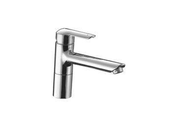 поверхность хром форма излива прямой тип излива стационарный управление однорычажный расположение выключателя вверху над изливом стандарт подводки 3/8" длина излива 200 мм высота излива 130 мм None