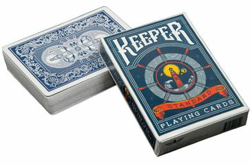 Стандартные карты никогда не смогут подарить такого удовольствия от игры, как набор «Ellusionist Keepers Blue». Здесь не рубашка выделяется привлекательной запринтовкой, но и лицевая сторона. Помимо непосредственно обозначения карт, тут нарисованы мини картинки в стиле классических карточных колод. Прочность и долговечность гарантируются использованием картона с пластиковым покрытием.