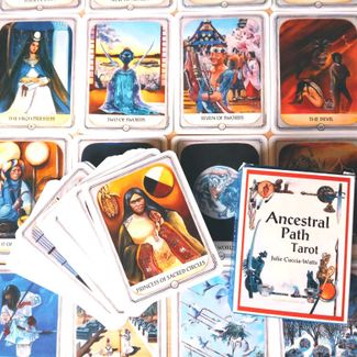 «Карты Таро: «Ancestral Path Tarot» – традиции и история предков в одном месте. Julie Cuccia-Watts подошла к созданию данной колоды с интересной стороны, благодаря чему её вполне можно назвать уникальной в своём роде. Хотя это всё тот же Райдер-Уэйт, но изображения претерпели значительные изменения. Даже масти стали другими: