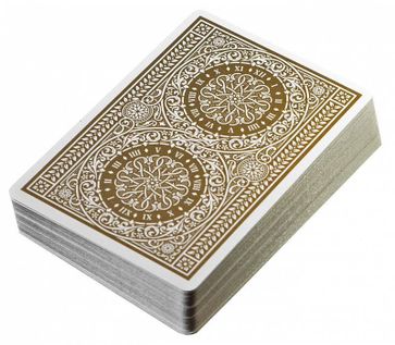 Если вам хочется владеть не просто картами, а достойной колодой, которую не стыдно показать даже в высшем обществе, то стоит купить «Theory11 Ivory Tycoon» от американского производителя. Для изготовления здесь использован картон, дополнительно покрытый слоем пластика для обеспечения высокой прочности и хорошей долговечности. Рубашка украшена изображением циферблата с изысканным орнаментом.