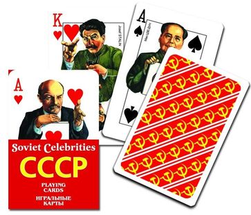 Дизайнерская колода «Карты СССР» с изображением лидеров советского периода истории от австрийского производителя Piatnik. Опыт производства карт свыше 150 лет гарантирует высокое качество продукции. Изготовлены из плотного картона. Удобны в использовании, легко тасуются, долговечны, рисунок не стирается.