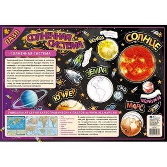 <p>В этой головоломке вы не найдете стандартных элементов.</p> <p>Каждый фрагмент пазла Солнечной системы &ndash; это отдельная планета или ее название. Ваш ребенок сможет расположить планеты в зависимости их расстояния до Солнца, познакомиться с их объемами и внешним видом.</p> <p>Данный пазл &ndash; интересное учебное пособие для тех, кто только знакомится с астрономией. Вся нужная информация дается в игровой форме и запоминается без скуки. Собирая головоломки по кусочкам, дети учатся внимательности, развивают зрительную память и логику.</p> <p>Пазлы подойдут для игр, а также занятий с детьми дома или в начальных учебных учреждениях.</p> <p>Размер пазла: 33,5х23,5х0,8 см</p> <p>Материал: плотный картон</p> <p>Упаковка: прозрачный пакетик с подвесом</p> <p>Производство: Россия</p> Наличные, безнал., карты, эл. деньги, юр. лица Возможен самовывоз. Есть доставка.