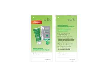 Листовки для раздачи имеют ряд преимуществ: оперативность – для того чтобы организовать раздачу листовок, нужно заказать готовый материал в головном офисе; адресность – за счет правильного выбора места раздачи можно охватить нужную вам целевую аудиторию (вблизи крупных торговых центров, салонов красоты); высокий отклик и низкая стоимость – по статистике, отклик доходит до 10%. Каждый вновь прибывший клиент в среднем делает покупку на 500 руб., при этом стоимость одного контакта от 1-2 рублей. Размер: 70х150 мм None