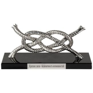 <p>Подобно тому как искусно сплетаются в один крепкий узел два разных конца этого изящного серебрянного каната, точно так же и нам невозможно создать нерушимую связь без стремления к единению, равноправия обеих сторон, помощи и поддержки в отношениях.</p> <p>Так как секрет прочности этого морского узла вам уже известен, осталось только поставить эту стильную статуэтку на видное место - чтобы всегда помнить, что с другой стороны всегда есть кто-то готовый разделить ваше стремление к бесконечным возможностям, сделав все возможное для достижения общих верных и долговечных целей. <br /><br /> Габариты: размер подставки 27,5х10х2 см, размер узла 24х11,5 см; Материал: полимер, серебрение, дерево <br /><br /></p> <p>&nbsp;</p> Наличные, безнал., карты, эл. деньги, юр. лица Возможен самовывоз. Есть доставка.