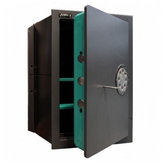Внешн. размеры (ВШГ, мм): 515365292 Внутр. размеры (ВШГ, мм): 492346234 Толщина металла (мм): лицевая панель 8 Тип замка: 1 кодовый механический и 1 ключевой Объем (л): 40 Взломостойкость: класс НО Количество полок: 2 съемные Цвет: серая маслина (RAL 7002), бирюза Вес (кг): 36,5