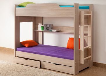 Прочная двухъярусная кровать с двумя вместительными ящиками. Разнообразие цветов поможет легко сделать выбор.