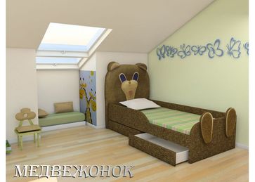 Кровать Медвежонок изготавливается с применением ткани "Невада" Эта модель может быть выполнена как односпальная или полуторная кровать. Размеры кроватей фабрики ВМК Шале, указанные на нашем сайте, - это размеры спального места (матраса).