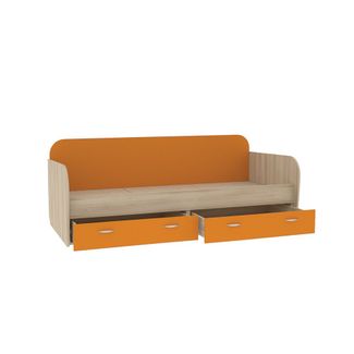 Ника 424 Кровать Размер: 2038 x 898, В 727 мм Материал: ЛДСП 16 мм Цвет корпуса: Бук Песочный Цвета фасадов: Капри Синий; Зеленый Лайм; Лимонный Сорбет; Оранжевый; Лаванда Фурнитура: выдвижные ящики на роликовых направляющих. Ручки: пластик Минимальная сумма заказа 1000 рублей. Возможен самовывоз.