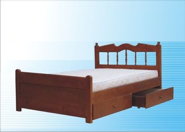 Кровать Николь изготавливается из массива сосны с последующим покрытием sayerlack (Италия). Эта модель может быть выполнена как односпальная или двуспальная кровать. Размеры кроватей фабрики ВМК Шале, указанные на нашем сайте, - это размеры спального места (матраса).