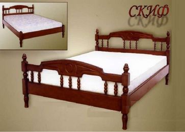 Кровать Скиф изготавливается из массива сосны с последующим покрытием sayerlack (Италия). Эта модель может быть выполнена как односпальная или двуспальная кровать. Размеры кроватей фабрики ВМК Шале, указанные на нашем сайте, - это размеры спального места (матраса), чтобы получить размеры всей кровати, к ширине кровати, в среднем, необходимо прибавить 6см., а к длине кровати - 12см. Высота днища кроватей ВМК Шале колеблется в пределах 40-47см., а высота спинки 80-90см. (в изголовье кровати). В базовом исполнении основание у кровати - поперечные брусья и лист оргалита. Также можно купить кровать вместе с ламельным ортопедическим основанием от Фабрики ВМК Шале и выкатными ящиками. Выкатные ящики сделают кровать еще более функциональной. Они не закрепляются в кровати и поэтому могут выполняться открыванием в любую из сторон кровати. Ортопедические основания от фабрики ВМК Шале изготавливаются из гнутых ламелей в металлическом основании (4 ножки). Матрас в комплектацию кровати не входит и покупается отдельно. Производство Владимирской мебельной фабрики, кровать доставляется напрямую от производителя, самовывоза нет. Характеристики: