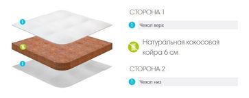 Жесткий матрас Baby Cocos-6 создан для новорожденных. Опорно-двигательный аппарат малюток нуждается в прочной поддержке для здорового формирования и развития. Натуральная кокосовая койра обеспечивает все условия для правильного отдыха ребенка. Структура кокосовых волокон пропускает воздух, отлично вентилируется, устойчива к деформациям и влагоустойчива. Для увеличения эластичности и прочности кокосовое волокно пролатексировано. Матрасы на основе кокосового волокна рекомендованы для новорожденных медиками. А мы рекомендуем купить матрасик Cocos-6 – и позаботится о позвоночнике и осанке крохи с самого рождения! Кол-во пружин на м2: Беспружинный Длина (см): 120 Ширина (см): 60 Высота (см): 6 Жесткость (сторона 1): Высокая Жесткость (сторона 2): Высокая Максимальная нагрузка на одно спальное место (кг): 40 Ткань чехла (по умолчанию): Детский поликоттон (100 г/м2) Основа: Натуральная кокосовая койра 6 см Минимальная сумма заказа 1000 рублей. Страна производства: Россия Возможен самовывоз.
