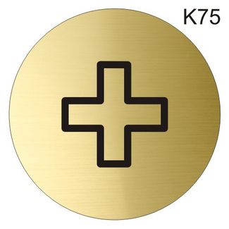 Информационная табличка «Аптечка» надпись на дверь пиктограмма K75 Настенная или дверная информационная табличка-пиктограмма. Выполнена из пластика методом лазерной гравировки. Крепление на двухсторонний скотч (в комплекте).диаметр, мм: 83цвета: серебряный / чёрный, золотой / чёрный, красный / белый, зелёный / белый, синий / белыйматериал: двухслойный пластик для гравировки Необходима предоплата. Visa/Mastercard, б/н расчет Можно купить без предварительного заказа. Возможен самовывоз. Есть доставка.