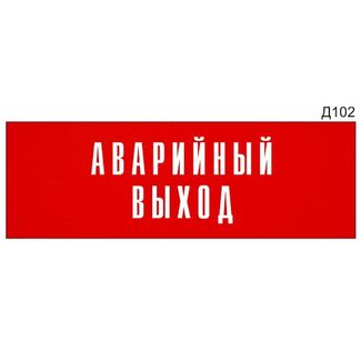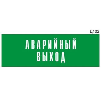 - Информационная табличка «Аварийный выход» на дверь прямоугольная Д102 (300х100 мм) по выгодной цене 944 р. руб.;