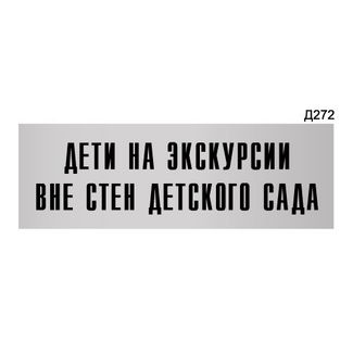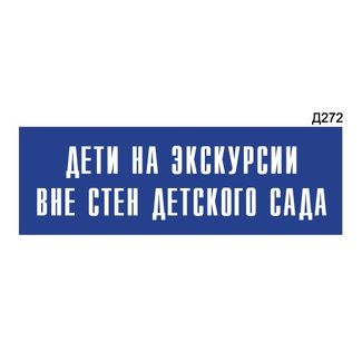 - Информационная табличка «Дети на экскурсии вне стен детского сада» прямоугольная Д272 (300х100 мм) по выгодной цене 944 р. руб.;