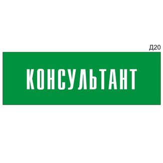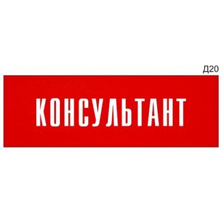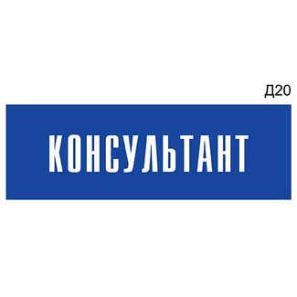 - Информационная табличка «Консультант» на дверь прямоугольная Д20 (300х100 мм) по выгодной цене 944 р. руб.;