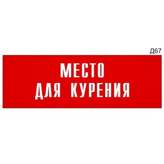 - Информационная табличка «Место для курения» на дверь прямоугольная Д67 (300х100 мм) по выгодной цене 944 р. руб.;