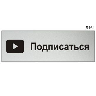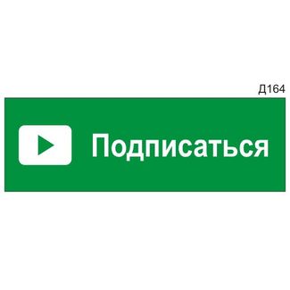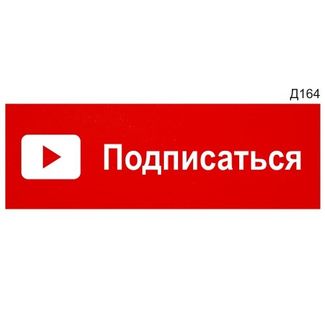 Информационная табличка «Подписаться» для Youtube прямоугольная Д164 (300х100 мм)