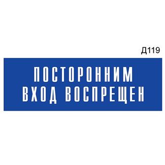 Информационная табличка «Посторонним вход воспрещен» на дверь прямоугольная Д119 (300х100 мм)