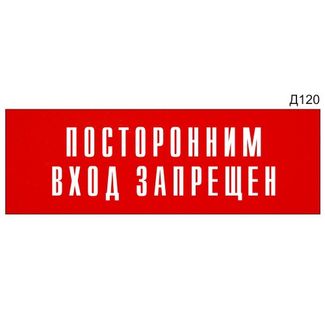 - Информационная табличка «Посторонним вход запрещен» на дверь прямоугольная Д120 (300х100 мм) по выгодной цене 944 р. руб.;