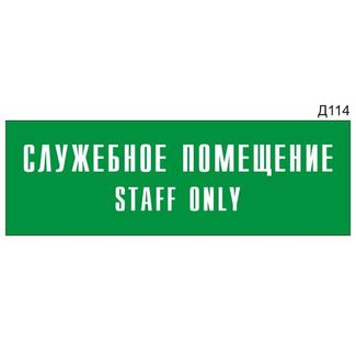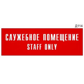 Информационная табличка «Служебное помещение Staff only» на дверь прямоугольная Д114 (300х100 мм)