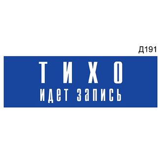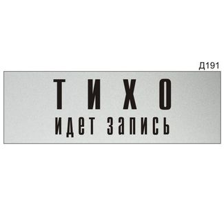 Информационная табличка «Тихо идет запись» прямоугольная Д191 (300х100 мм)