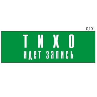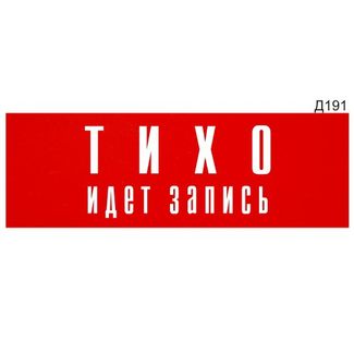 - Информационная табличка «Тихо идет запись» прямоугольная Д191 (300х100 мм) по выгодной цене 944 р. руб.;