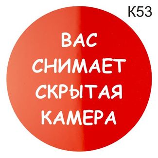 - Информационная табличка «Вас снимает скрытая камера» надпись на дверь пиктограмма K53 по выгодной цене 493 р. руб.;