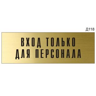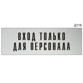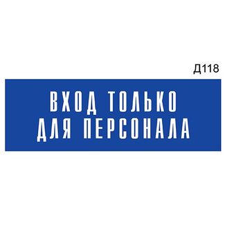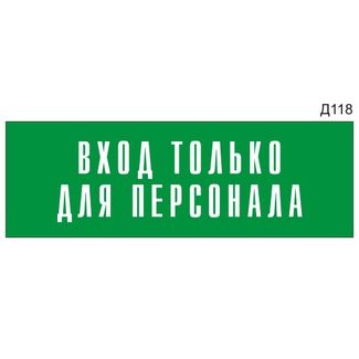 Информационная табличка «Вход только для персонала» на дверь прямоугольная Д118 (300х100 мм)