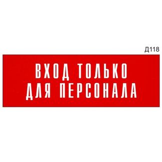 - Информационная табличка «Вход только для персонала» на дверь прямоугольная Д118 (300х100 мм) по выгодной цене 944 р. руб.;