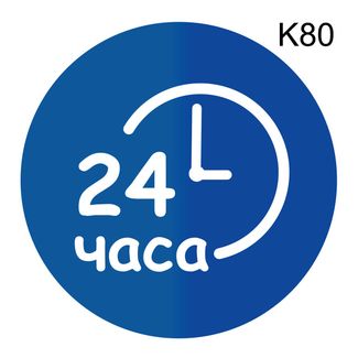 - Информационная табличка «Время работы 24 часа, круглосуточно» надпись на дверь пиктограмма K80 по выгодной цене 493 р. руб.;