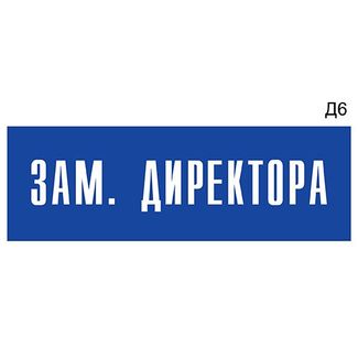 - Информационная табличка «Зам.директора» на дверь прямоугольная Д6 (300х100 мм) по выгодной цене 944 р. руб.;