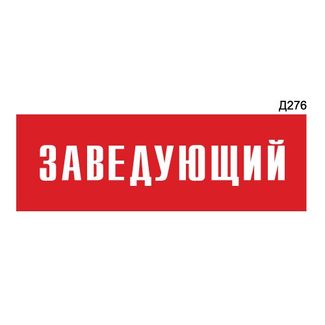 - Информационная табличка «Заведующий» прямоугольная Д276 (300х100 мм) по выгодной цене 944 р. руб.;
