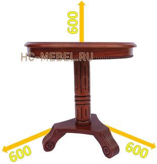 Tea table made of malaysian oak, round table top covered with lacquer. Столик изготовлен в классическом стиле из твердых пород дерева. Затонирован под цвет темный орех, покрыт 3-мя слоями глянцевого лака. Столешница круглая, резная окантовка. Подстолье изготовлено из цельного дерева. Размеры: 600х600 мм. Материал: малазийский дуб. Высота столика 600 мм, диаметр столешницы 600 мм. None Есть доставка.