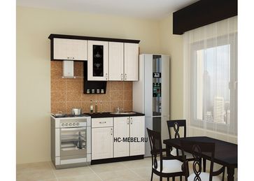 Материал: Корпус-ЛДСП, цвет венге. Фасад-МДФ, цвет млечный дуб. Столешница 38мм, цвет венге. Ручка дуга металл. Цоколь в цвет корпуса. Стекло витраж