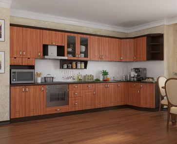 Размеры: 3950х1465 мм. Материал: Корпус-ЛДСП, цвет венге. Фасад-МДФ, орех. Столешница 38мм, цвет венге. Ручка дуга металл. Цоколь в цвет корпуса. Стекло витраж. Данный гарнитур КЛАССИКА-5 УГЛОВОЙ укомплектован всем необходимым: столешницей 38мм, глубокой врезной мойкой с сифоном, эмалированной сушкой с поддоном, полочкой для специй, цоколем в цвет корпуса, карнизом в цвет корпуса, металлическими ручками и ножками. None Есть доставка.
