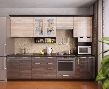 Размеры: 2950 мм. Материал: Корпус-ЛДСП, цвет венге. Фасад-МДФ, цвет серый глянец/ясень бежевый глянец. Столешница 38мм, цвет венге. Ручка скоба металл матовый. Цоколь в цвет корпуса. Стекло витраж. Данный гарнитур ВЕНЕЦИЯ-5 укомплектован всем необходимым: столешницей 38мм, глубокой врезной мойкой с сифоном, эмалированной сушкой с поддоном, полочкой для специй, цоколем в цвет корпуса, карнизом в цвет корпуса, металлическими ручками и ножками. None Есть доставка.
