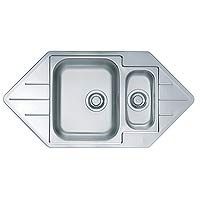 Угловая мойка из нержавеющей стали. Ширина шкафа угловая 900 x 900 мм, в линию 600 мм. Размер мойки: 985 x 500 мм. Размер чаши 340 x 420 x 160 мм и 148 x 300 x 75 мм. Поверхность лайн (декор). Сифон в комплекте. Наличные, б/н расчет, банковские карты