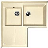 Угловой блок с двумя вместительными чашами и просторным крылом. Установка сверху столешницы. Размер мойки 960х960 мм. Размер чаши 374х385 и 470х385 мм, глубина чаши 200/150 мм. В комплект входит отводная арматура для двух разноуровневых чаш с выпусками 3 1/2" и переливом. Наличные, б/н расчет, банковские карты