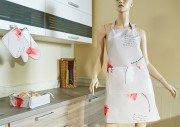 Размеры и комплектация: Прихватка: 18 см х 18 см. Варежка-прихватка: 30 см х 15 см. Хлебница:: 20 см х 20 см. Фартук: 76 см х 70 см. Состав: 100% п/э, водоотталкивающая пропитка None